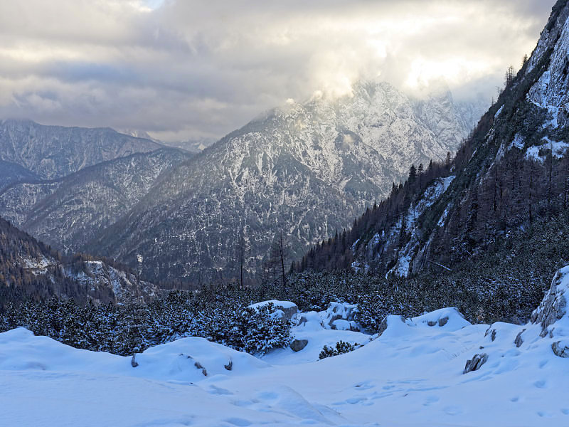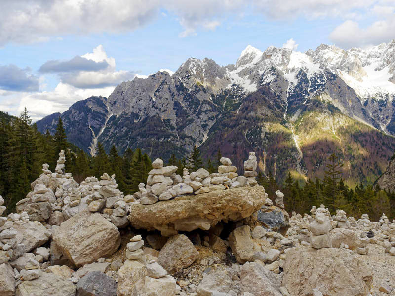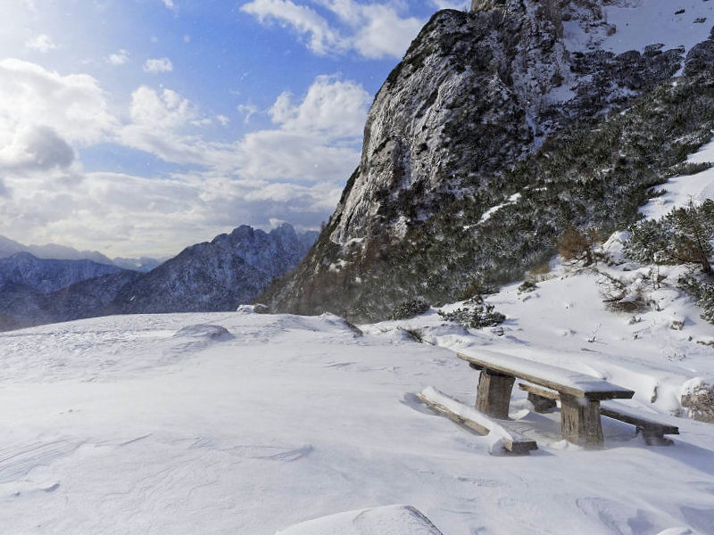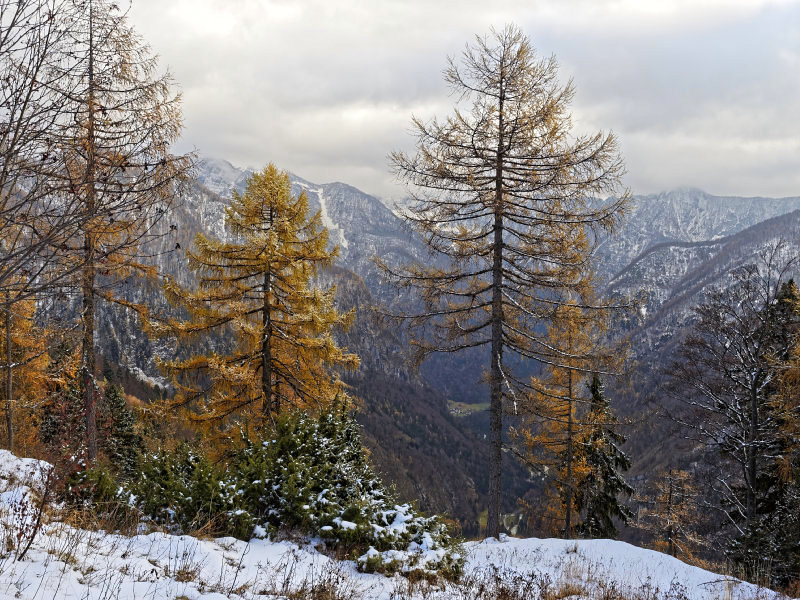 Ganz interessant sind die Weitblicke von dem Vršičpass im Herbst oder im Frühjahr, wenn der Pass im Schnee gerade öffnet.